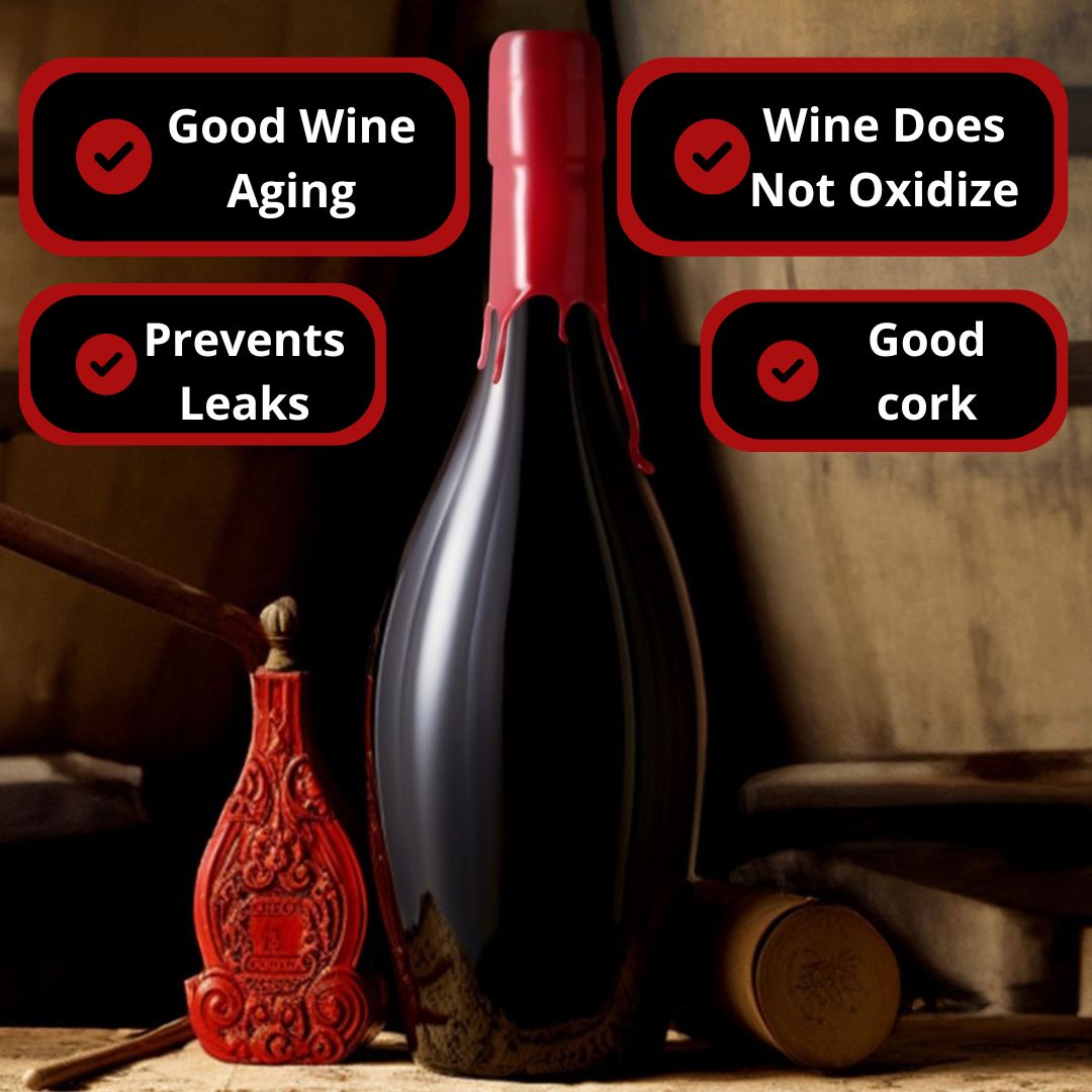 Prevents leaks- Wax fills tiny gaps between the cork and the bottle neck. It adds a second protection on top of the cork. If the cork shrinks or loosens, wax helps block the wine from seeping out. Especially useful for shipping, because wax helps stop slow leaks around the cork.